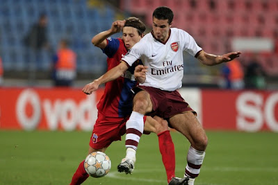 Pina la golul olandezului, Steaua a dat impresia ca ar putea fi egala celor de la Arsenal. Steaua a început curajos si a fost aproape de deschiderea scorului înca din minutul doi, dar Badea a trimis peste, cu capul, dintr-o centrare foarte buna a lui Surdu. Tribunele au strigat gol peste numai un minut, când acelasi Badea a lovit din nou cu capul, balonul a scuturat plasa, dar asistentul de pe acea parte a vazut ca atacantul român se afla în pozitie de ofsaid. Imediat, pericolul s-a mutat la poarta lui Zapata. "Tunarii" au facut sah-mat defensiva ros-albastrilor în minutul opt. Hleb i-a asezat balonul perfect lui Fabregas, dar spaniolul a tras incredibil peste poarta. Dupa un început alert, jocul a pierdut apoi din viteza. Abia în minutul 20, Dica a sutat bine de la 30 de metri, dar mingea a trecut putin pe lânga poarta lui Almunia. Dincolo, Zapata a dat mari emotii, dupa o centrare deviata de Petre Marin, prinzând mingea si cazând dincolo de linia portii. Arbitrul norvegian a mers pe mâna asistentului, iar acesat pe mâna lui Zapata si astfel am scapat de gol.
